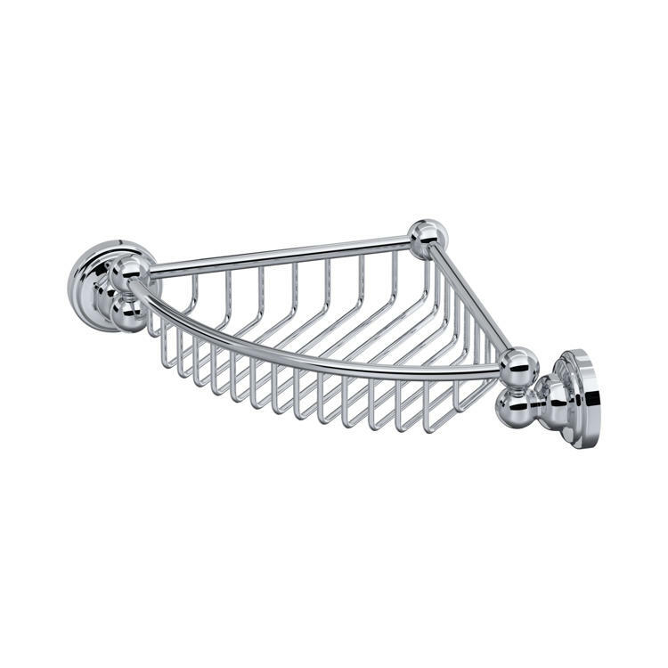 Exklusiv hörnhylla av massiv, pläterad mässing med de karakteristiska kullederna som matchar blandare, kranar & övriga tillbehör. Justerbara fästen i vägg gör att hyllan alltid sitter som den ska.