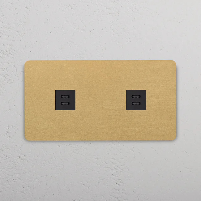 2 x Dubbelt USB-C uttag Antique Brass/Svart