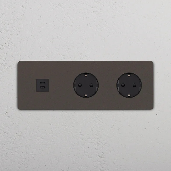 Eluttag dubbelt + USB-C Bronze