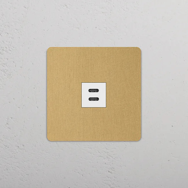 » Dubbelt USB-C uttag Antique Brass/Vitt