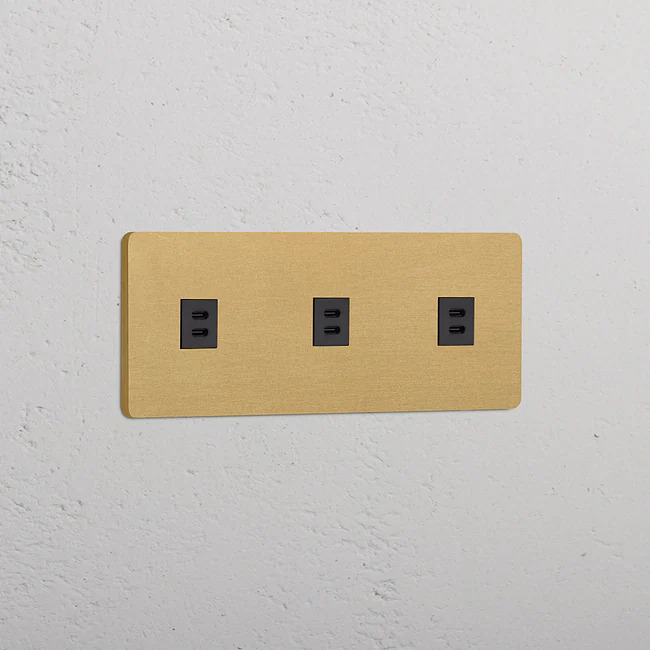 2 x Dubbelt USB-C uttag Antique Brass/Svart