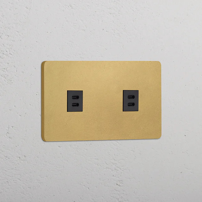 2 x Dubbelt USB-C uttag Antique Brass/Svart