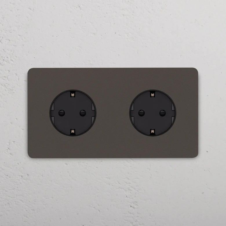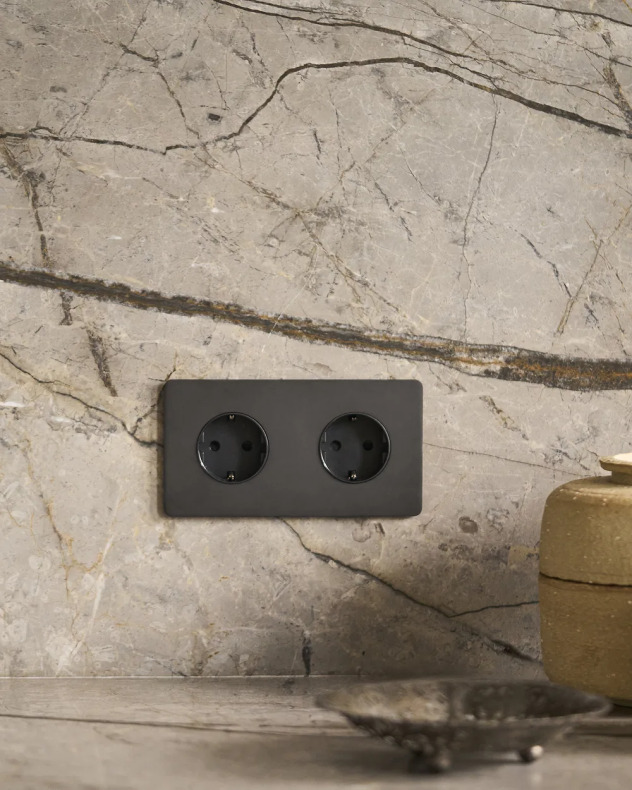 Exklusiva brytare och uttag, med ram i solid antik- eller pläterad mässing.