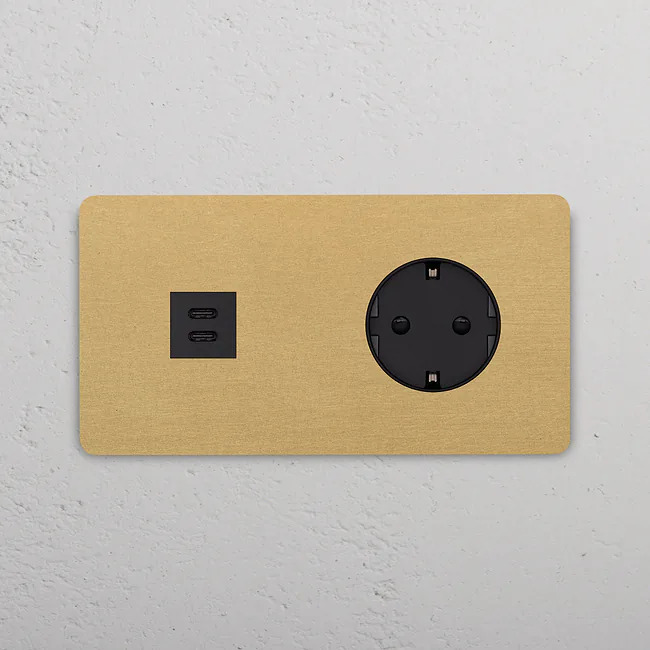 Exklusiva brytare och uttag, med ram i solid antik- eller pläterad mässing.