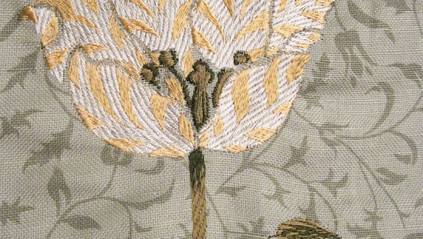 Morris Broderat Tyg - Garden Tulip, Sea Green