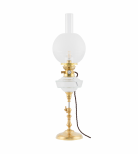 En magnifik elmonterad fotogenlampa på ställbar fot.
