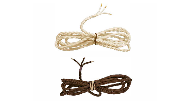 Dubbelisolerad knoppledning med FEP-isolering (godkänd enligt CE-reglerna för användning som armaturkabel). Försedd med jordledning