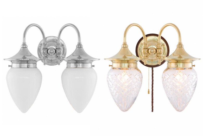 Klassisk väggarmatur med en större och mer påkostad skärmhållare i jugendstil som var vanliga kring sekelskiftet 1900. Främst avsedd som allmän- eller stämningsbelysning i exempelvis en korridor eller på var sin sida om en spegel eller tavla.