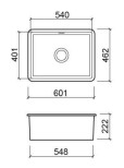 Vasken har 3,5" utlopp som passar med korgventil alternativt avfallskvarn.