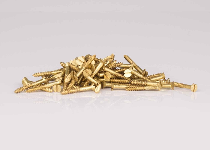Mässingsskruv, försänkt med spår.